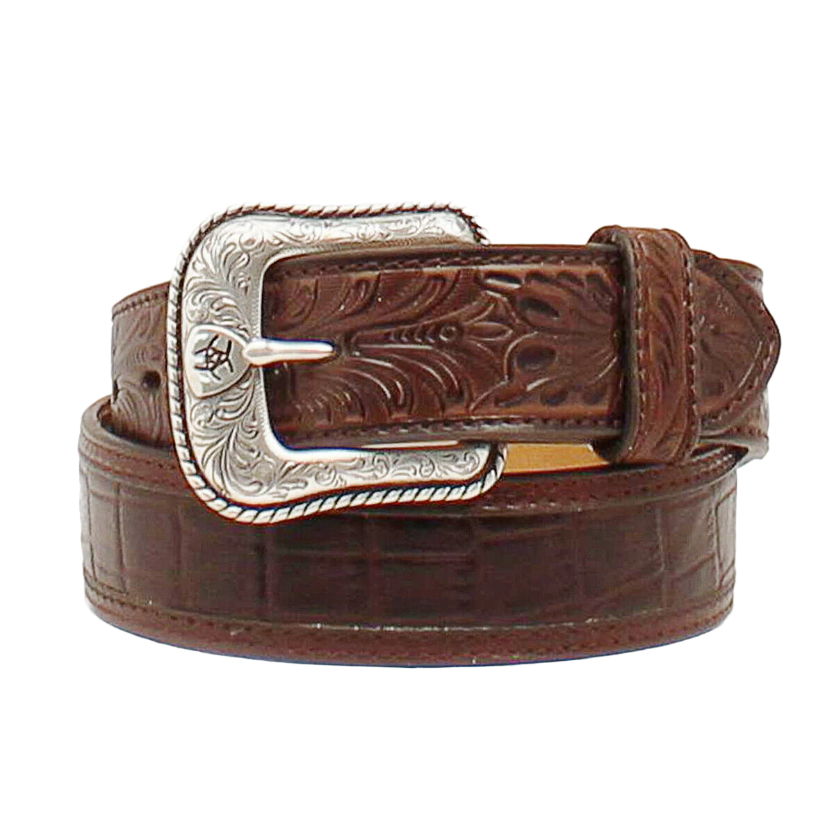 Ariat Men’s Brown Crocodile Print Floral Embossed Tab Belt A1021202