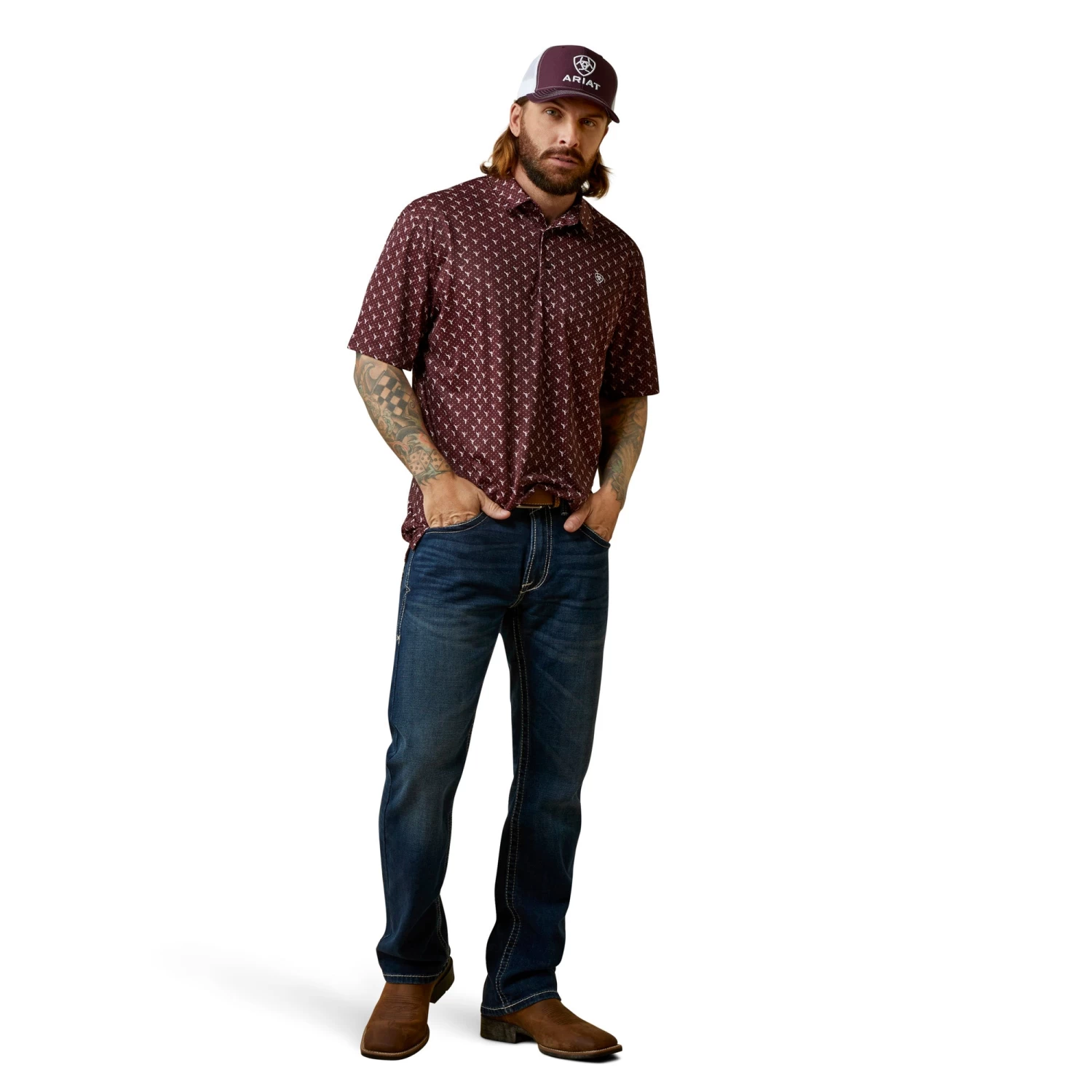 Ariat® Men’s Bull Skull Print All Over Malbec Polo Shirt 10043335