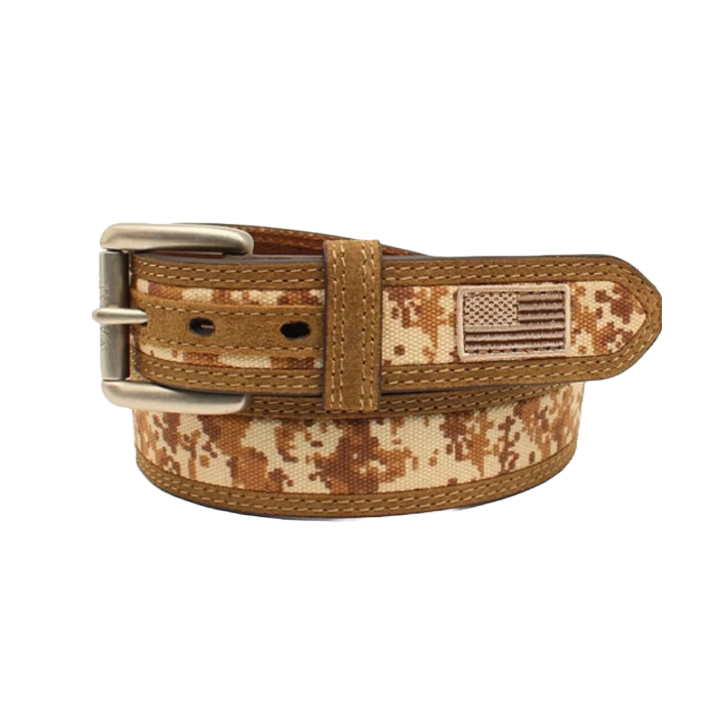Ariat Men’s Digital Camo USA Flag Medium Brown Belt A1035044