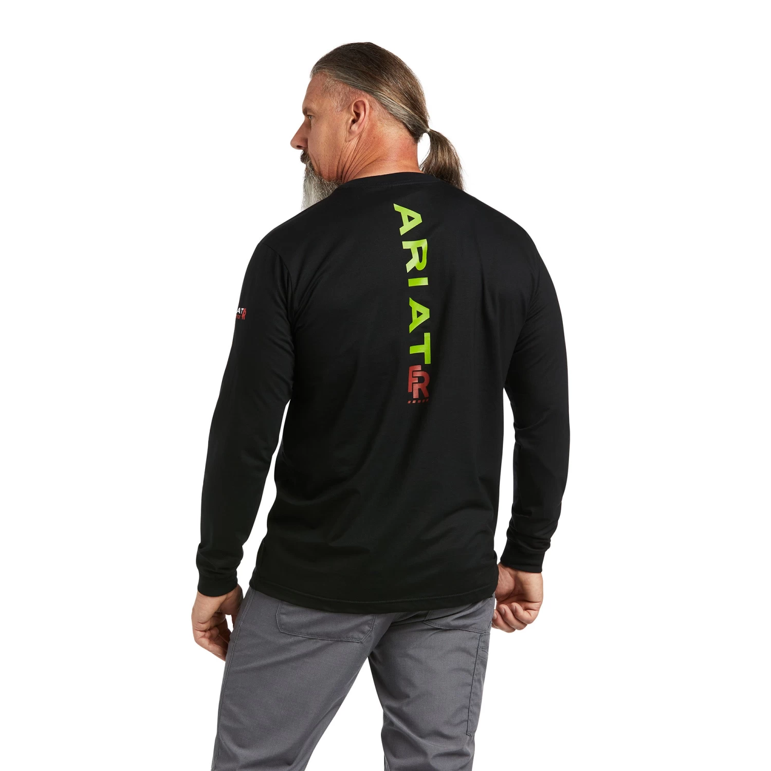 Ariat® Men’s FR Stretch Logo Long Sleeve Black & Lime T-Shirt 10039295