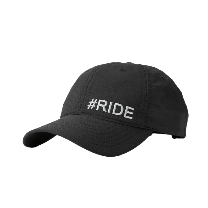 - #RIDE embroidered on left panel.