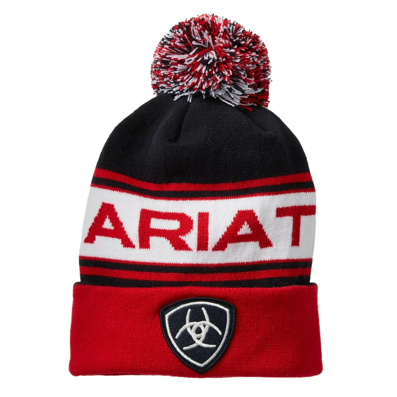 Ariat® Unisex Team Logo Navy & Red PomPom Beanie 10021125